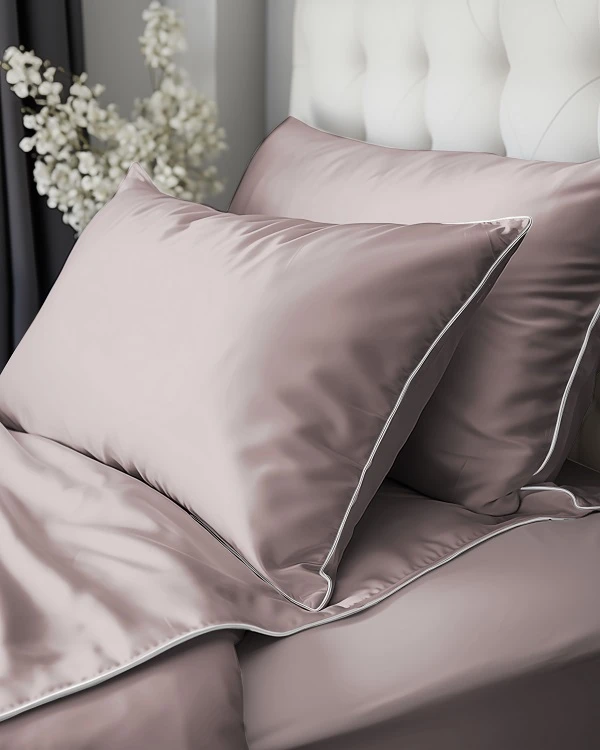 Luskusowa Pościel Jednokolorowa Z Lamówką Makosatyna 220x200 cm. Pudrowy Róż