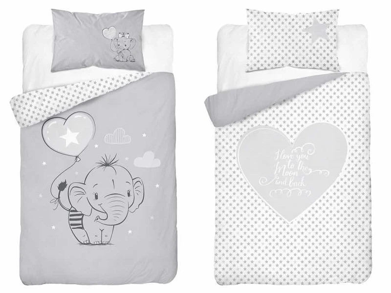 Pościel Dziecięca Bawełniana Do Łóżeczka 90x120 cm. Szara Słonik Szary Balonik Gwiazdki 2930-B