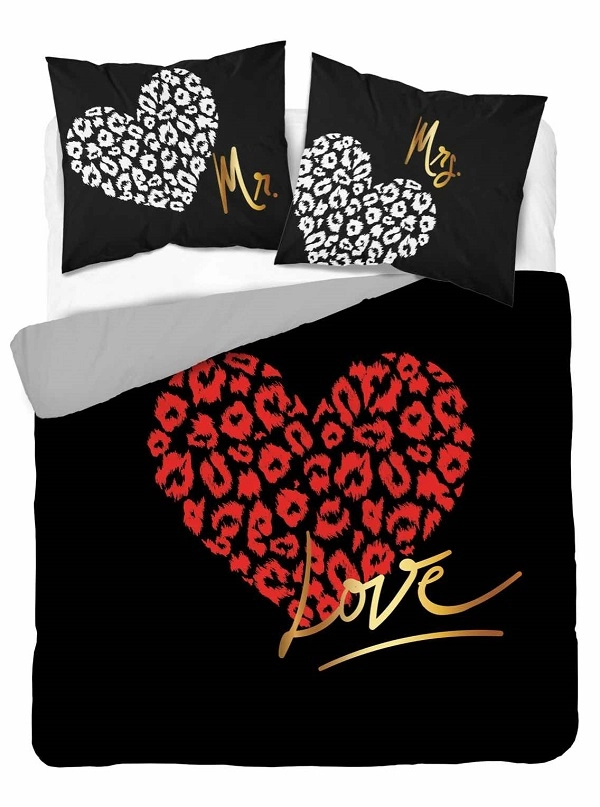 Pościel Holenderska 160x200 cm. 100 % Bawełna Czarna Serce Czerwone Białe Love 5291-A