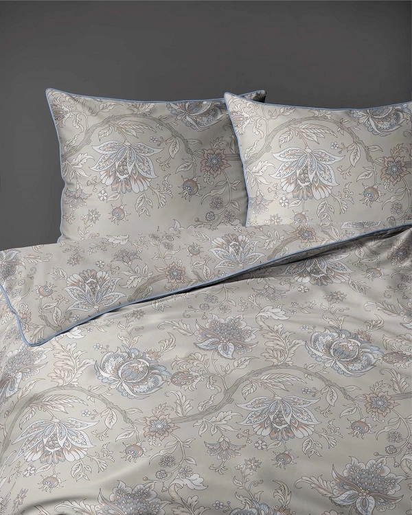 Pościel Lame Percale 160x200 cm to ekskluzywny komplet wykonany w 100% z najwyższej jakości bawełny perkalowej. Dzięki gęstemu splotowi tkanina jest wyjątkowo trwała i odporna, przewyższając pod tym względem standardowe materiały pościelowe. Jej powierzchnia jest jedwabiście gładka, zapewniając niezrównany komfort podczas snu. Wzornictwo pościeli zachwyca subtelnym motywem kwitnących łąk, który harmonizuje z estetyką ekologiczną, a jednocześnie doskonale komponuje się z wnętrzami w stylu klasycznym lub glamour. Unikalnym akcentem jest elegancka, płaska lamówka, idealnie współgrająca z tłem i wzorem. Poszewki na poduszki zdobione są delikatnym przeszyciem, które nadaje im wyrafinowanego charakteru i podkreśla luksusowy styl kompletu.