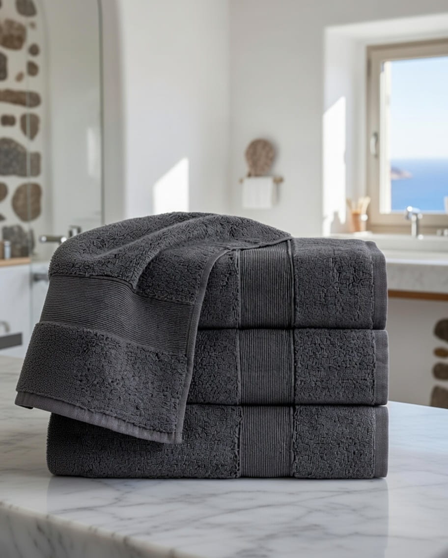 Komplet 3- Ręczników Bawełnianych 50x90 cm. 600gsm Ciemny Szary RCC-10