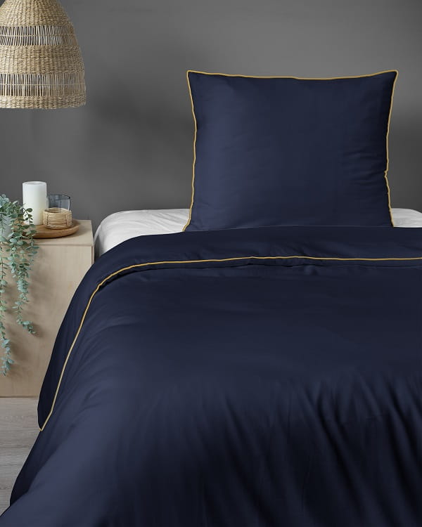2. Kolor Granatowy: Granatowa pościel to wybór dla tych, którzy cenią sobie elegancję i spokój. Ten kolor dodaje głębi i tajemniczości do Twojej sypialni, tworząc wyrafinowany i uporządkowany wygląd. Kolor granatowy jest łatwo dopasować do różnych stylów dekoracji, co czyni go idealnym dla klasycznych i nowoczesnych przestrzeni.