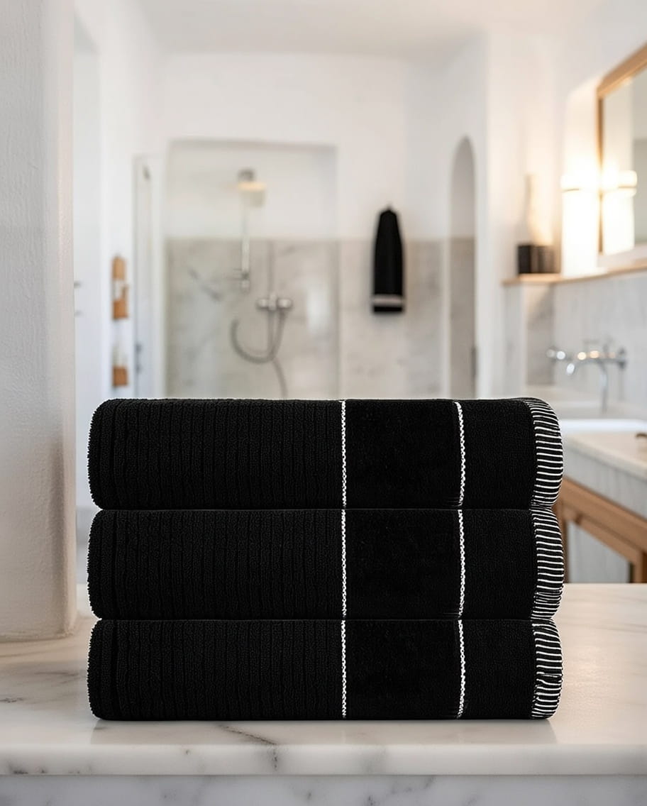 Komplet 3- Ręczników Bawełnianych 70x140 cm. 470 gsm Czarny Teo-02