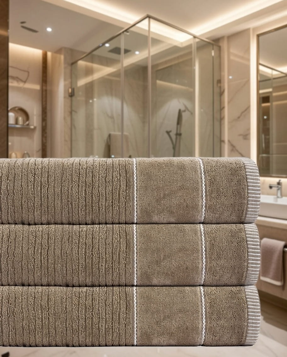 Komplet 3- Ręczników Bawełnianych 70x140 cm. 470 gsm Taupe Teo-10