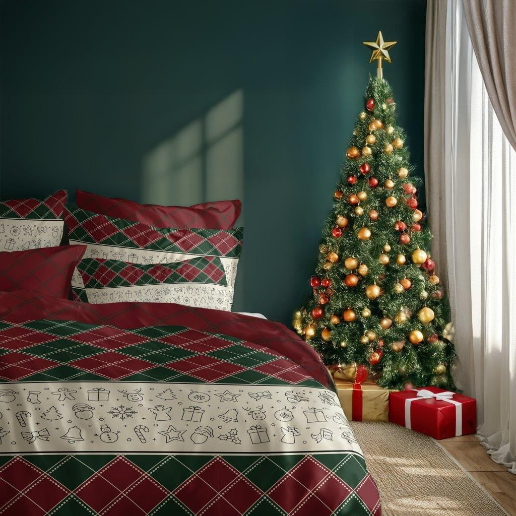 Komplet Pościeli Świątecznej Bawełnianej 220x200 BAWEŁNA 100 % FR-004
